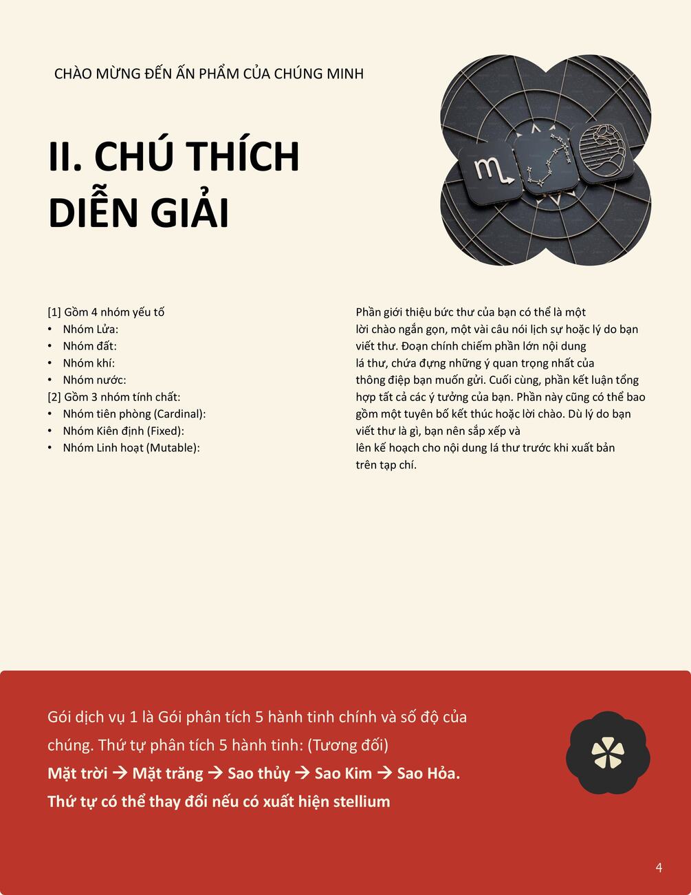 - Analysis of 5 main planets in your personal natal chart (Natal Chart Wheel): Sun, Moon, Mercury, Venus and Mars.